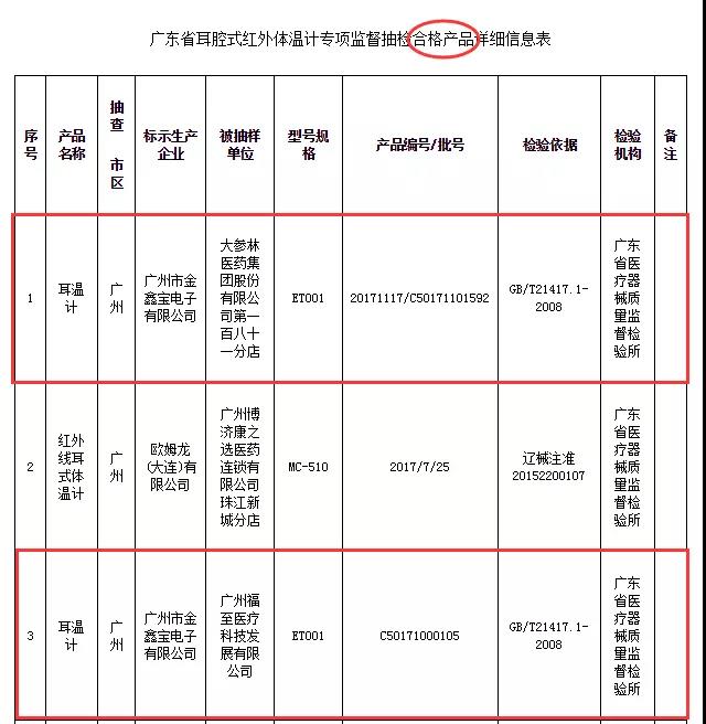 廣東省藥監(jiān)局此次抽查合格產(chǎn)品名單上,倍爾康耳溫計(jì)ET001榜上有名!