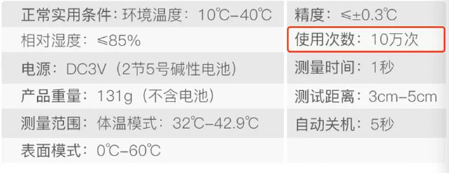 ①如果你有仔細(xì)看過(guò)倍爾康非接觸式體溫計(jì)的說(shuō)明書(shū),就會(huì)發(fā)現(xiàn)“使用次數(shù)”的說(shuō)明,這個(gè)“使用次數(shù)”也就是按鍵的使用次數(shù)。以倍爾康JXB-178為例,它的按鍵使用次數(shù)是10萬(wàn)次,超過(guò)10萬(wàn)次后也會(huì)影響準(zhǔn)確度。