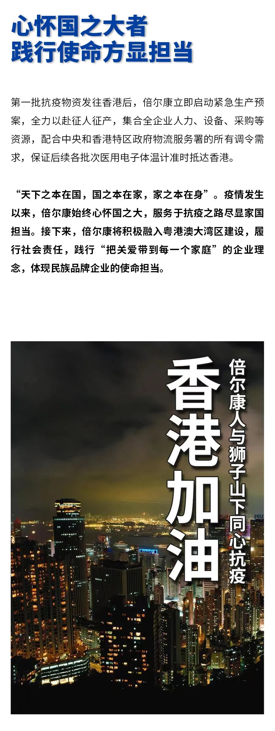 抗疫頭等大事,倍爾康勇?lián)鷩姑c香港并肩抗疫