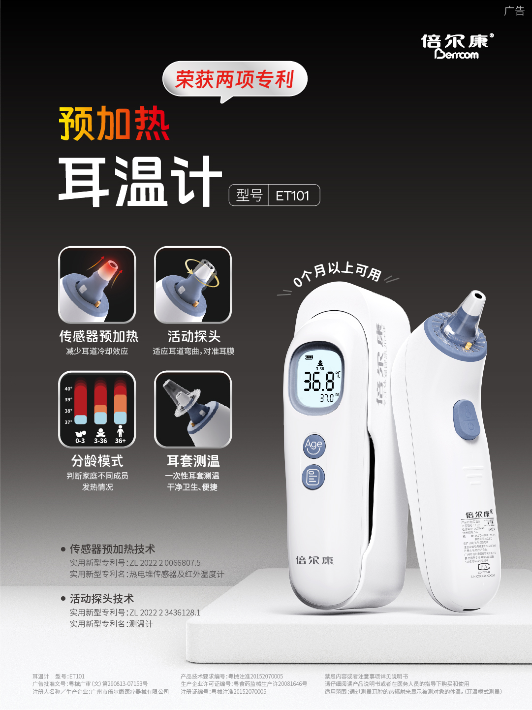 年齡段選擇:可選擇受測對象不同年齡測溫模式